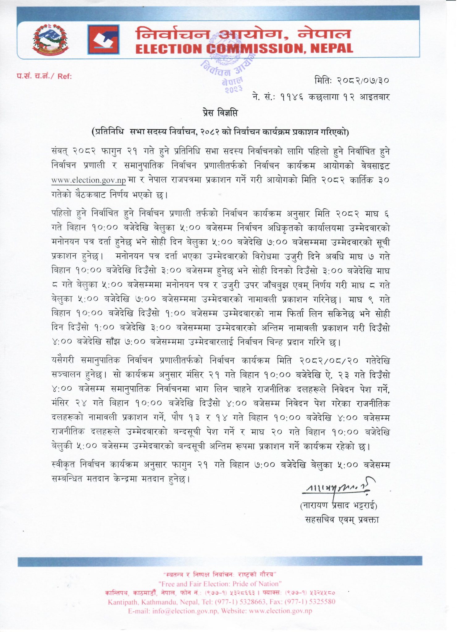 फागुन २१ मा हुने निर्वाचनको कार्यतालिका सार्वजनिक
