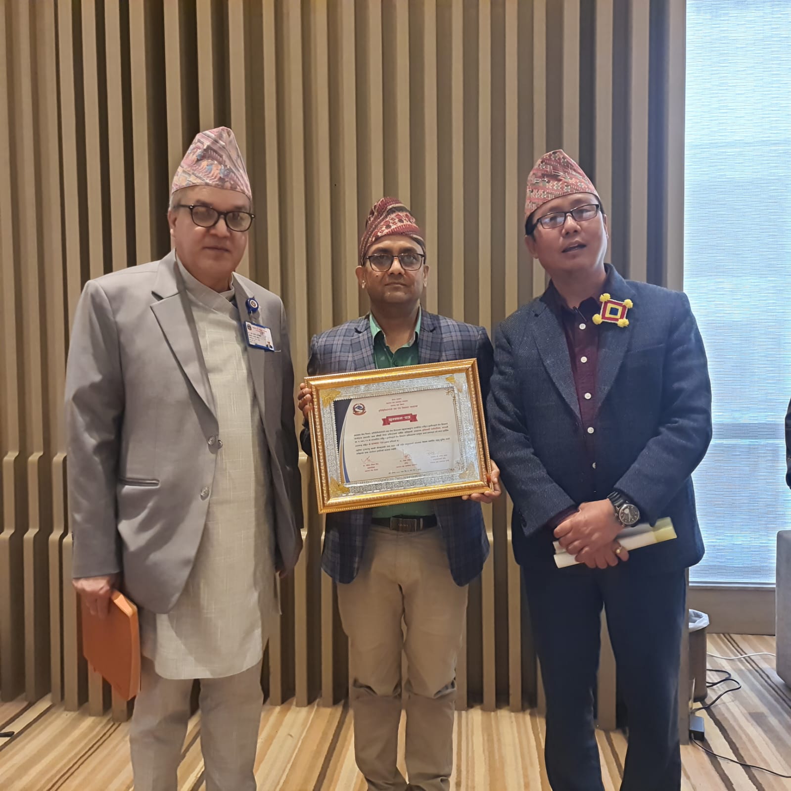 सम्मानका लागि स्वास्थ्य चौकी इन्चार्ज न्यौपाने र पालिका अध्यक्ष लिङ्देन काठमाडौं गएका थिए ।