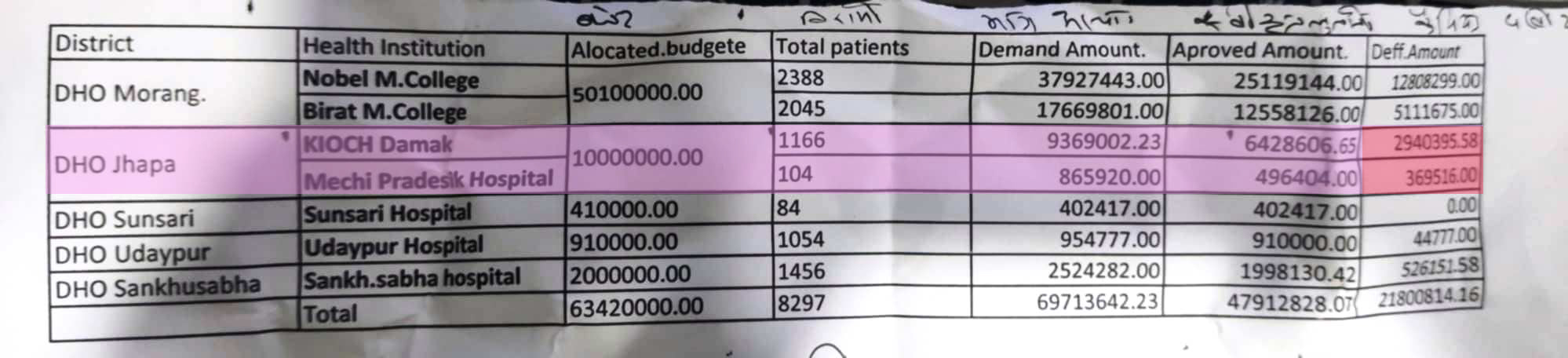 झापासहित निःशुल्क उपचार गर्न तोकिएका अन्य अस्पतालहरूले प्रदेश सरकारलाई बिल तथा बिरामीको विवरण पठाउँदा फर्जी कागजात बनाएको पुष्टि भएको हो । त्यसरी प्रस्तुत बिलको रकम २ करोड १८ लाखभन्दा बढी रकम रहेको कोशी प्रदेश स्वास्थ्य मन्त्रालयले जनाएको छ ।