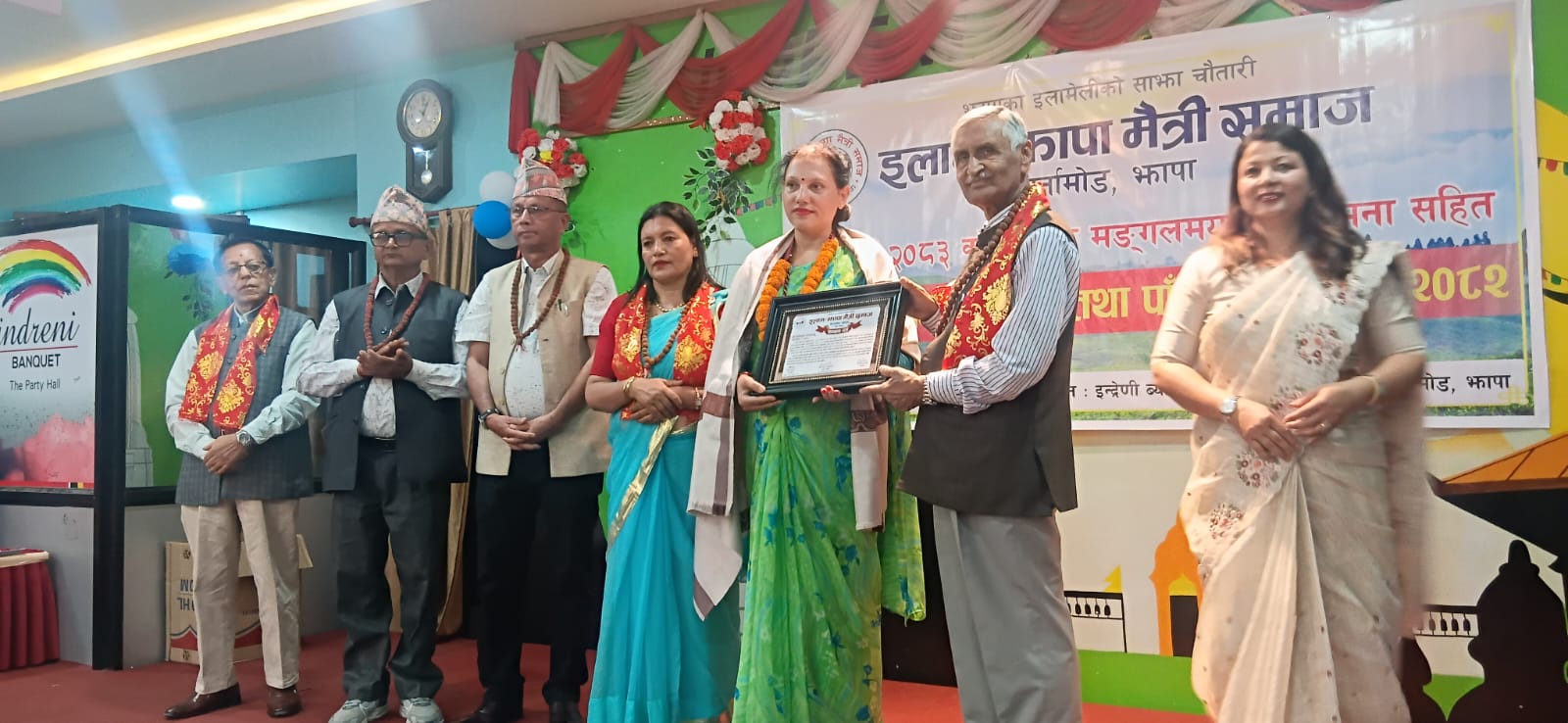 बिर्तामोड । इलाम झापा मैत्री समाजले दुई जना विशिष्ट व्यक्तित्वलाई सम्मान गरेको छ। समाजले शनिबार पाँचौं अधिवेशनको अवसरमा टोल माया खनाल र छवि पौडेललाई सम्मान गरेको हो ।
